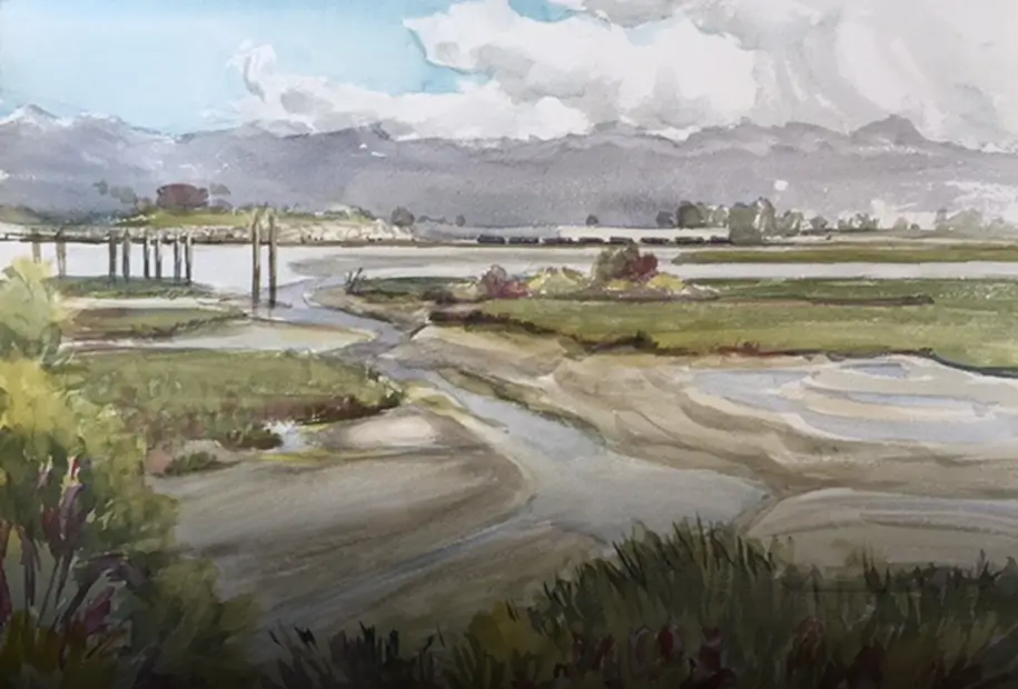 Through plein air watercolor painting, Sharon Hind-Smith brings these fleeting scenes to life, painting outdoors in the environment where each landscape breathes, moves, and changes.