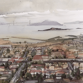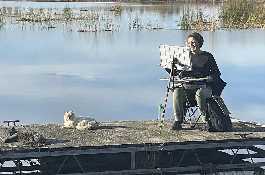 Sharon is a plein air watercolor artist with a deep connection to the landscapes of Northern California. Her practice focuses on observing nature directly—painting outdoors to capture the atmosphere, temperature, and light in its purest form.